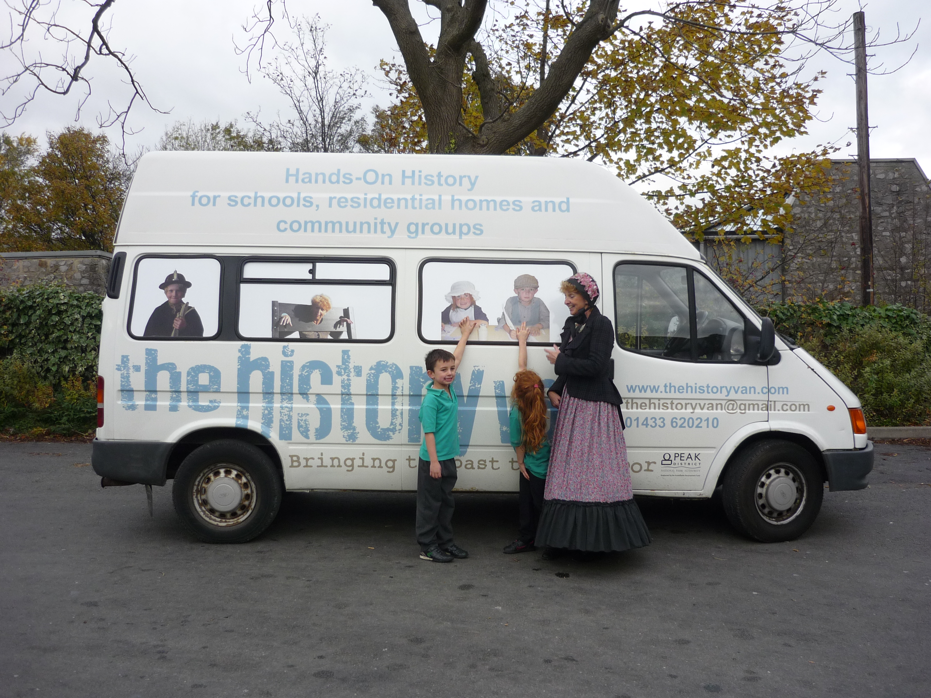 Lucy and Sam from Castleton School with Jenny Bland and The History Van