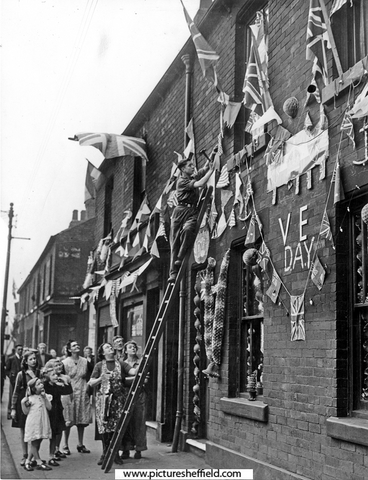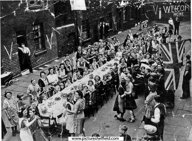 A selection of photographs from the Sheffield, Chesterfield and Derbyshire areas showing how May 8th 1945 was celebrated with street parties.